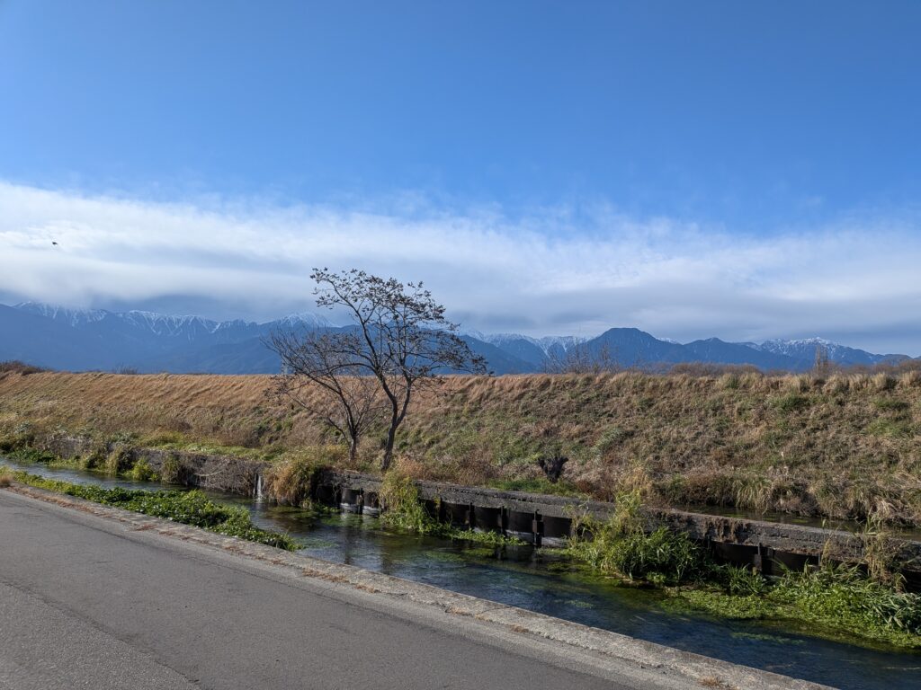 天気の良い日には、遠くに北アルプスの稜線がくっきりと浮かび上がります。